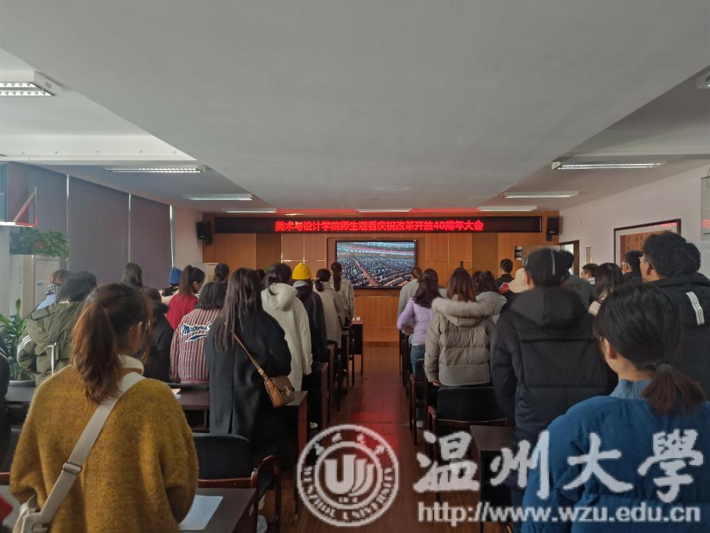 今天上午美院组织全体研究生观看了中共中央、国务院召开庆祝改革开放40周年大会。在会上国家表彰了一大批对祖国改革开放有着杰出贡献的人们,在此我想由衷地向他们表示感谢,是他们在党领导下实现了将社会由封闭、贫穷、落后和缺乏生机转变为开放、富强、文明和充满活力的新社会,是他们的付出使经济实现了持续快速增长。