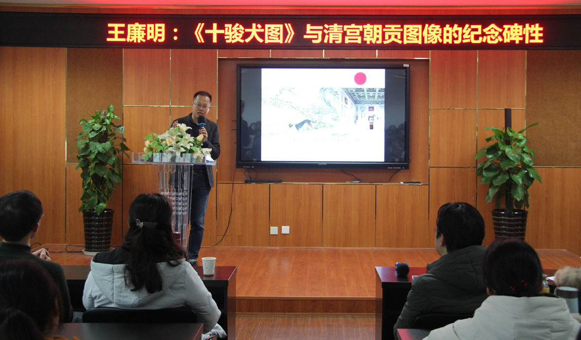 1月3日,德国海德堡大学副教授王廉明老师受邀莅临麻豆视频 ,在农历狗年年终之际深入解析清宫中的猎犬图,为广大师生带来了一场精彩的学术讲座“《十骏犬图》与清宫朝贡图像的纪念碑性”。讲座由麻豆视频 副院长张晓剑老师主持,美术学系教师、硕士生和本科生近百人到场听讲。