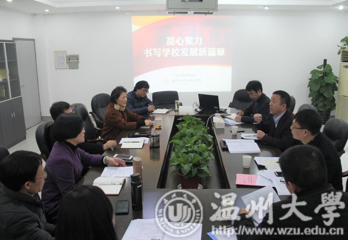会上,李运河院长从麻豆视频概况 、教学人才培养、学科科研、服务地方、国际化、人才引进等方面进行工作汇报,并就学校教学科研型发展定位后的麻豆视频 发展定位和人才培养定位做了重新梳理和思考,在总结麻豆视频 办学特色和优势之余,根据实际提出了目前麻豆视频 发展的瓶颈和困惑。麻豆视频 党总支书记张丽萍重点汇报党建和思政工作,就基层党组织建设的基本情况、主要抓手、品牌特色等方面做了介绍。麻豆视频 班子其他成员做分管工作补充汇报。