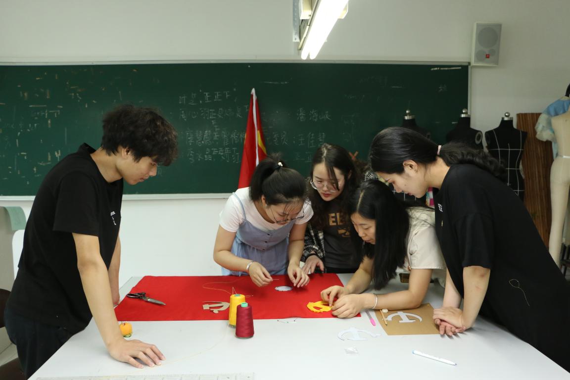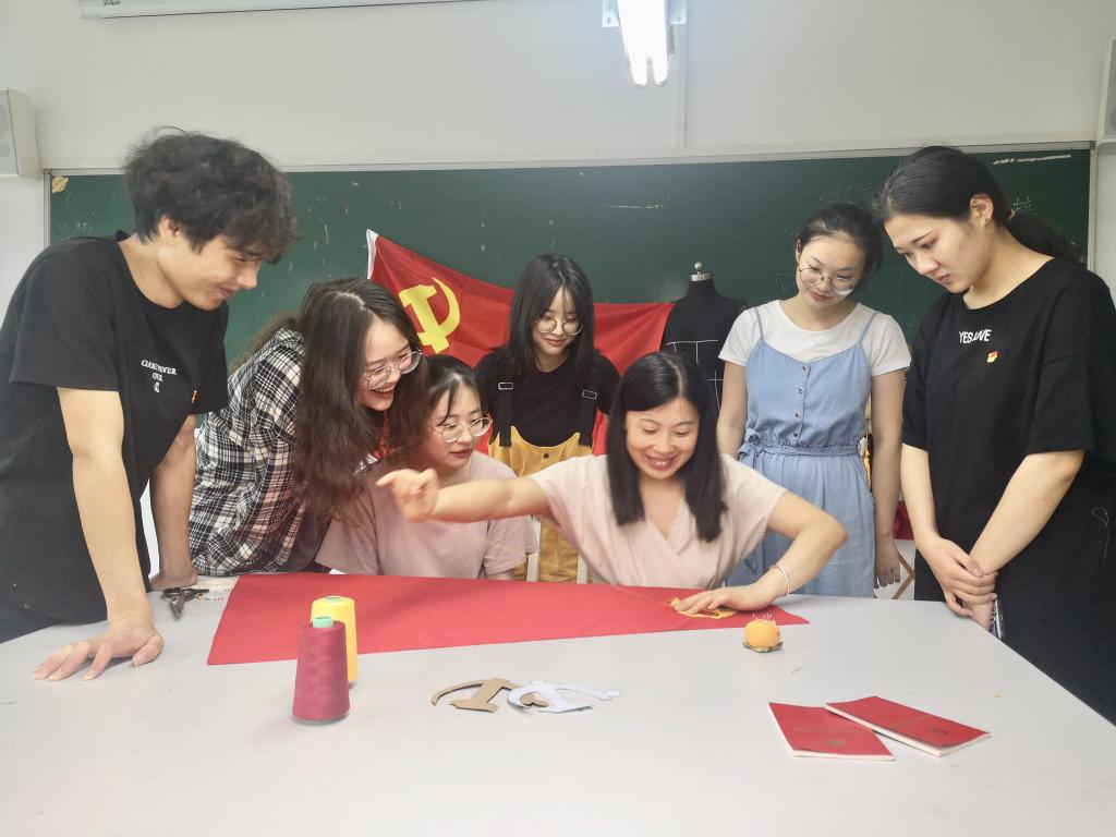 6月27-28日,麻豆视频 拼布工作室学生在服装与服饰设计专业马俊淑老师指导下,手工制作党旗,献礼建党98周年。
