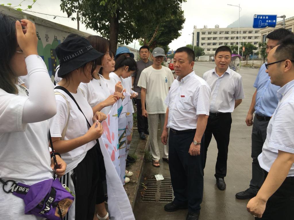 首先“艺绘”实践队队长向谢书记简单地介绍了实践队的基本情况——该支实践队由20名队员组成,它致力于社会主义核心价值观及非物质文化遗产的宣传与保护工作。在交谈中,谢书记肯定了大家为城镇面貌改变所做出的努力,也勉励大家作为当代大学生要结合自己所学的知识来服务社会。同时,对实践队员提出了要站在一定的高度策划整个实践活动,并呈现出一幅幅高质量、有意义的墙绘作品的要求。社会实践是一项非常有意义的活动,既可以锻炼能力,又可以磨砺意志。队员们纷纷表示一定会竭尽全力、全力以赴,为城镇容貌的提升贡献自己的力量。随后,谢树华书记为实践队员送上慰问品。