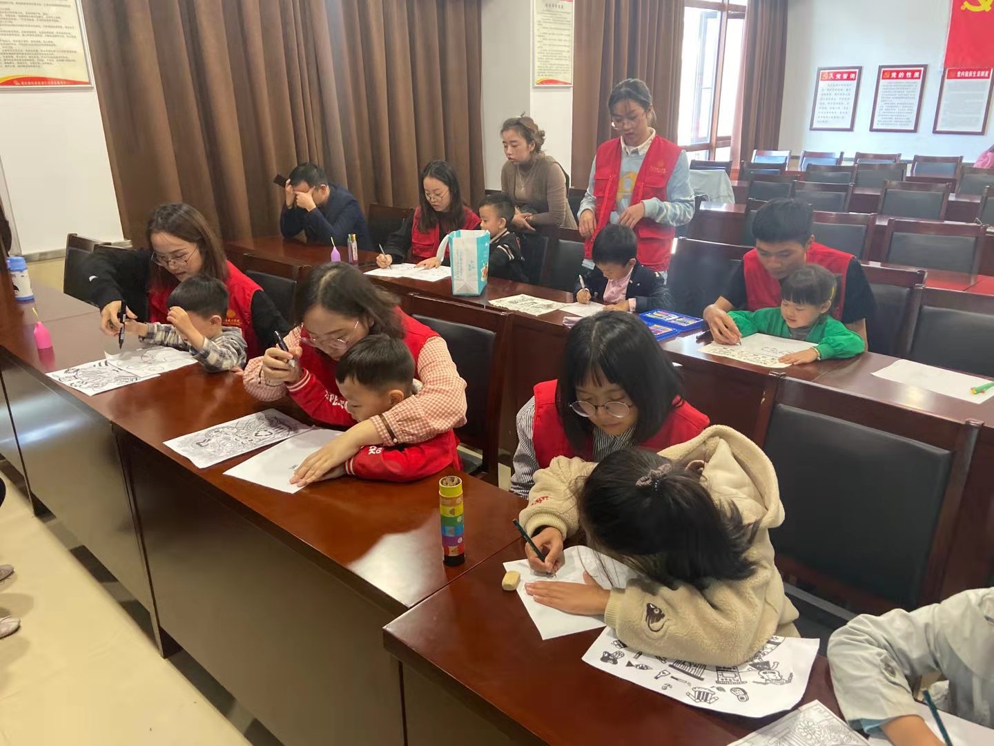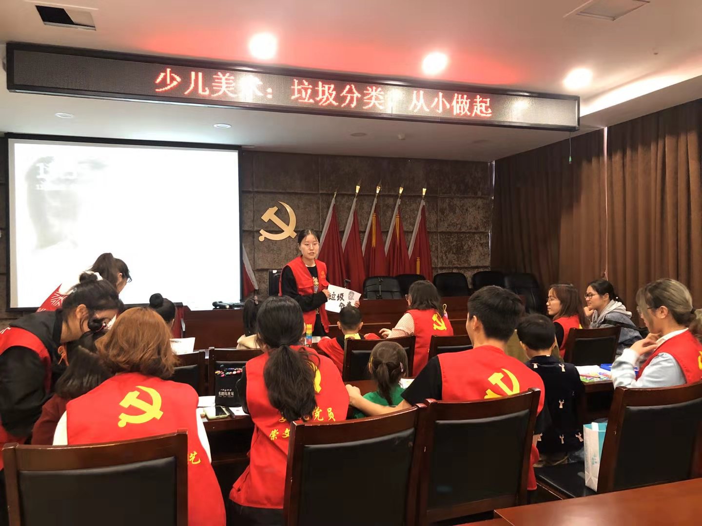 党员志愿者引导小朋友进行垃圾分类漫画创作2