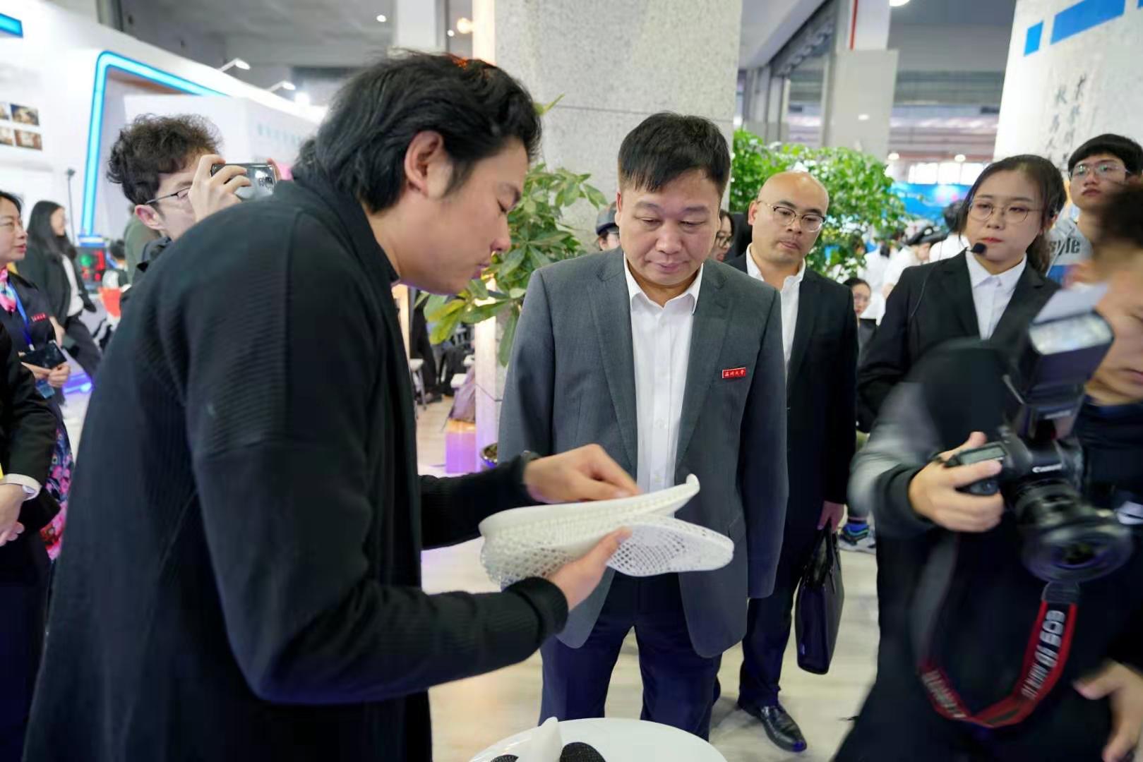 VR环境交互漫游、红点·映筑环境规划设计、三维脚型扫描仪也吸引了市领导、我校领导以及市民的关注。