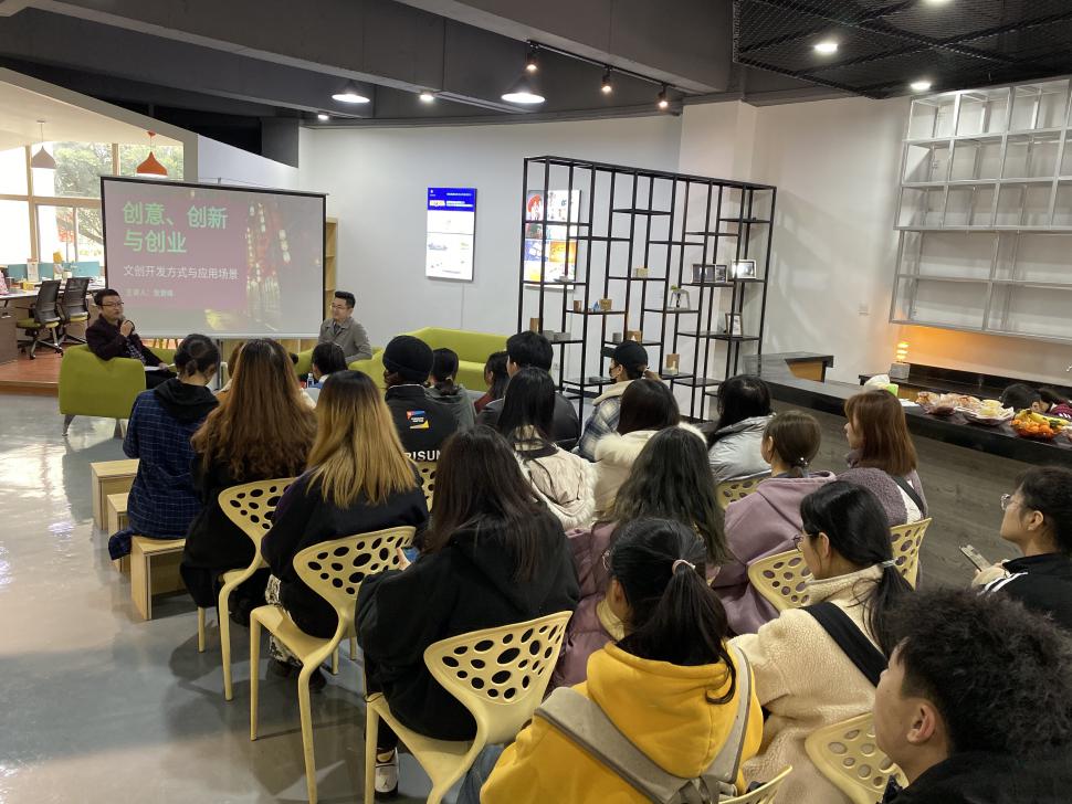 “融艺优品”创客空间第一场创客沙龙也在当天隆重开讲,麻豆视频 邀请了温州四目联合文化传播有限公司张登峰总经理为麻豆视频 创客空间团队作《创意、创新与创业》讲座。张登峰总经理分享了融合创新思维的概念,希望创业的团队能在创新创业创意与营销领域,拓展新的领域,寻找新的价值网,入驻的创业团队也分享了他们的创业经历。交换相互的创业经验。