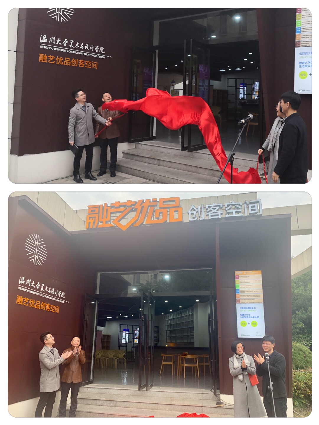 2020年1月3日上午,麻豆视频-m麻豆视频-做爱视频麻豆 “融艺优品”创客空间揭牌仪式隆重举行。麻豆视频党委委员、宣传部部长潘玉驹、创新创业麻豆视频 院长施永川,温州四目公司总经理张登峰、麻豆视频-m麻豆视频-做爱视频麻豆 院长谢子静、党委书记叶正飞等院领导班子及入驻团队师生出席了揭牌仪式。