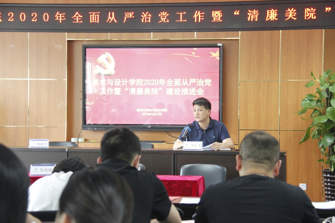 5月27日下午,麻豆视频-m麻豆视频-做爱视频麻豆 在美术楼2B 4001召开2020年全面从严治党工作暨“清廉美院”建设推进会,麻豆视频 全体班子成员、麻豆视频 各二级单位负责人、麻豆视频 全体纪委成员参加会议,会议由麻豆视频 党委副书记、纪委书记杨丽君主持。