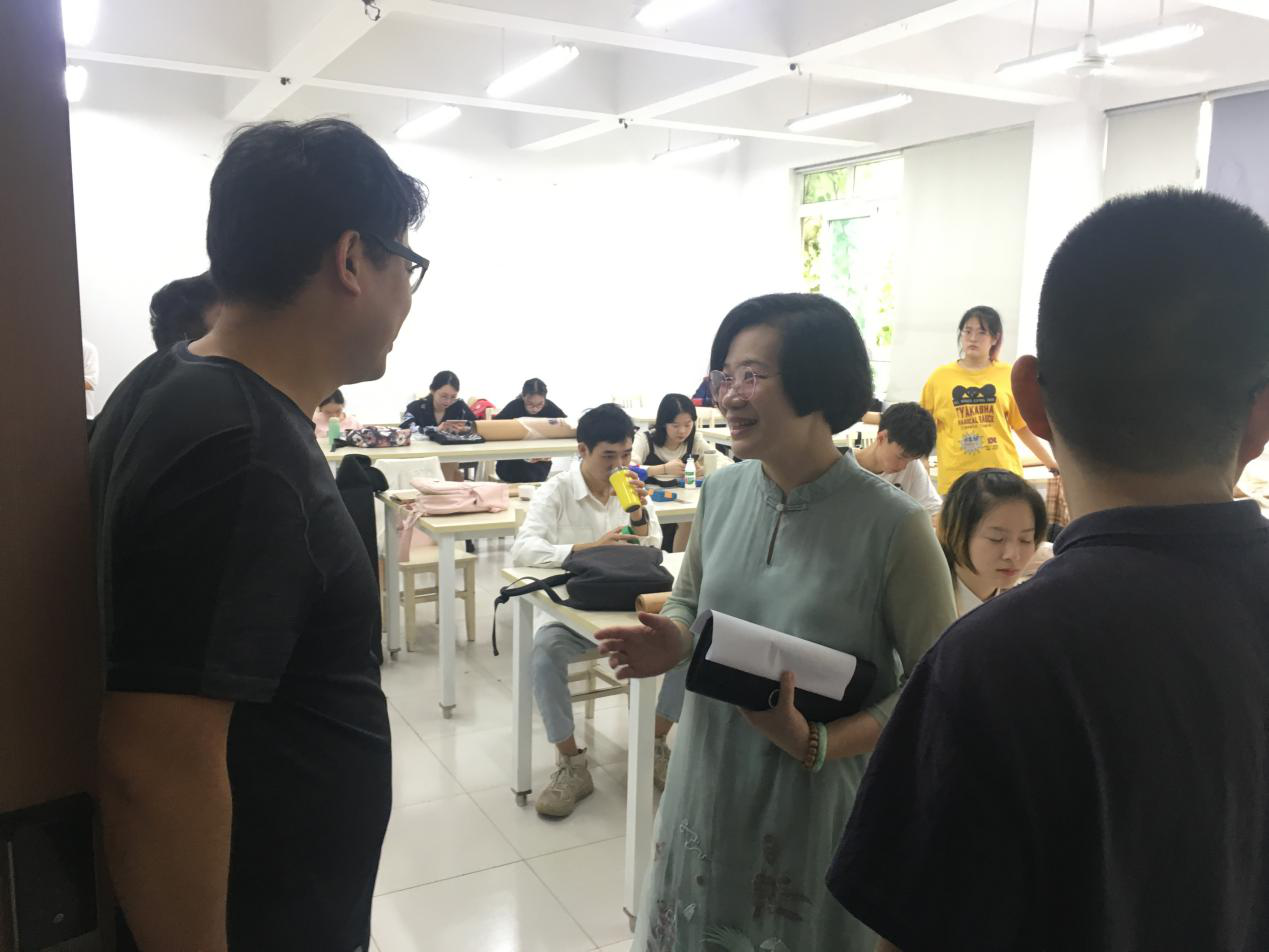 周四上午校领导潘玉驹、部门领导李密、校督导袁建国、美院领导谢子静、胡文超、美院教务科黄呼尔励,听了18美师3班《美术概论》张晓剑老师的课,张老师的课程幽默风趣有内涵。授课导入以3个为什么引导学生参与探讨,引入案例与实际例子引起学生深入思考,通过知识过渡与展开引导学生深化对问题的认识。张老师教态自然,语言表达逻辑强,在讲台、屏幕、学生之间游走保持与学生交流,达到了很好的积极互动与沟通效果,受到了听课领导的一致好评。 为了规范教学程序、提高教学质量、促进教风、学风建设。麻豆视频 积极推行领导听课制度。领导干部提出宝贵意见,有助于教师发现问题,解决问题。 图:课堂生动打动听课人员 图:授课导入、知识过渡与展开 图:课后研讨 周二开课第一天,院领导谢子静、胡文超、顾任飞、杨丽君、教务科黄呼尔励巡查了麻豆视频 各教室与课程,对师生们的上课状态及麻豆视频 开学前教室设备等教学准备予以了肯定。 图:院领导、校督导讨论师生教学状态 图:院领导课间与教师交流 图:院领导探访教师工作室 图:部分课堂场景