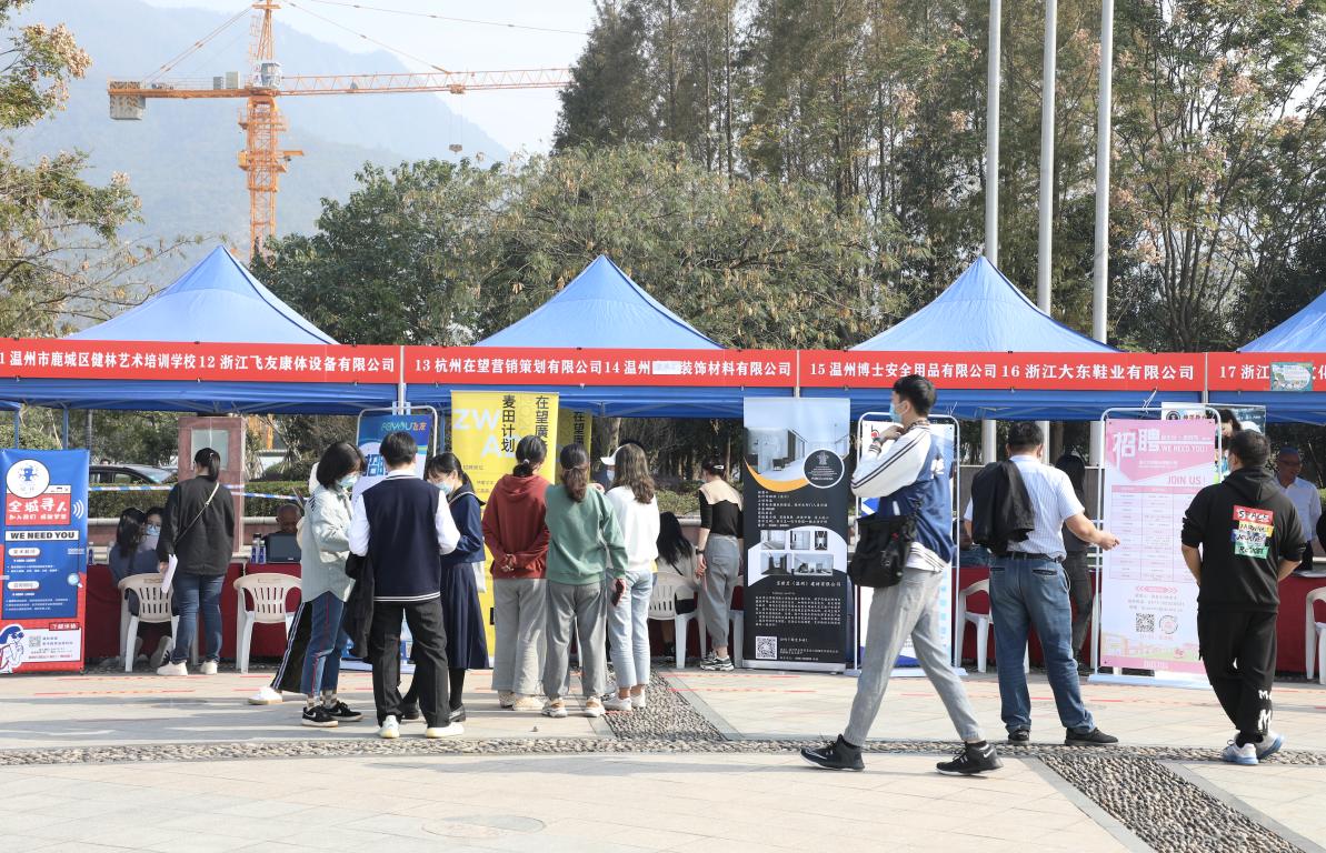 2020年11月8日下午,麻豆视频 2021届毕业生专场招聘会于大学生活动中心广场顺利举办。招聘会上,来自上海、杭州、宁波、台州、嘉兴等地区的64家单位,携2000余个岗位广揽英才,吸引了服装、设计、美术等校内外近千人才参加,其中麻豆视频瓯江麻豆视频 艺术设计分院、在温高职院校相关专业毕业生到会参与,场面热闹而有序。