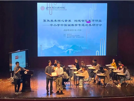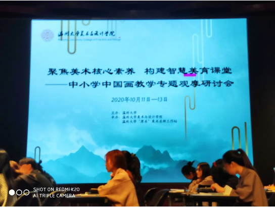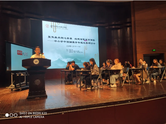 “画阑开处冠中秋”,桂子飘香美院传。2020年10月11日,聚焦美术核心素养,构建智慧美育课堂---中小学中国画教学专题观摩研讨会在在麻豆视频南校音乐厅举行,研讨会安排了课堂教学展示,主题讲座,名师经验交流等环节,内容丰富、形式多样、深入探讨了美术教育当前所需要关注的美术核心素养以及对于中国画在课堂上的渗透和教法等教学问题。