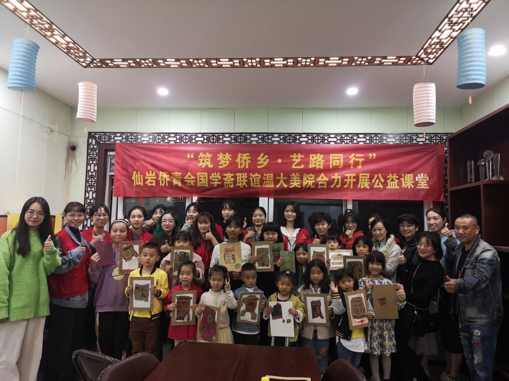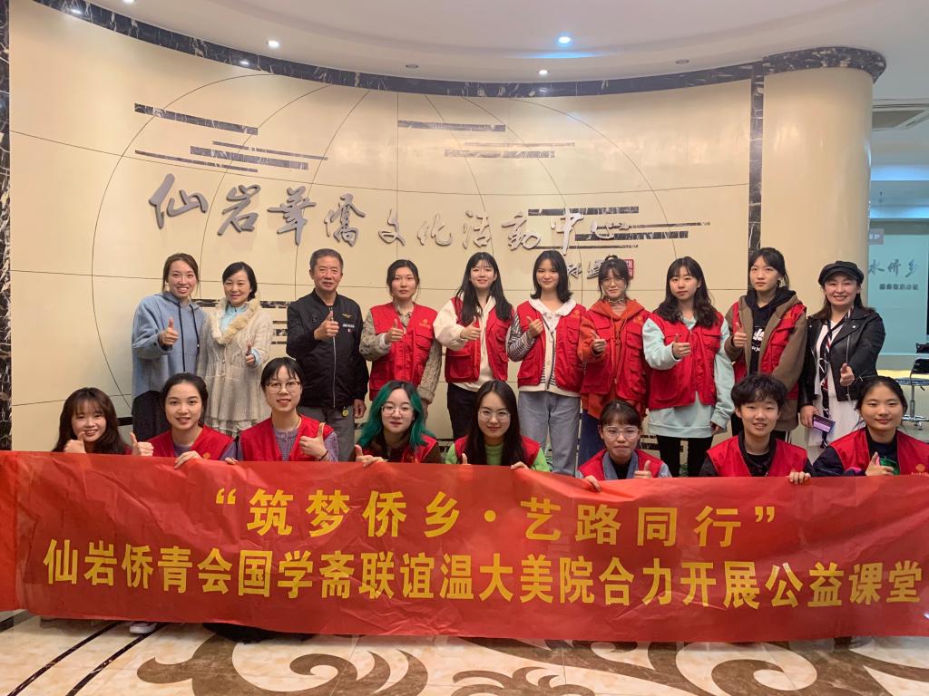 2020年11月22日,由温大美院学生支部联谊仙岩侨青会国学斋开展的“筑梦侨乡、艺路同行”公益课堂在仙岩综合文化站三楼教室顺利开班。
