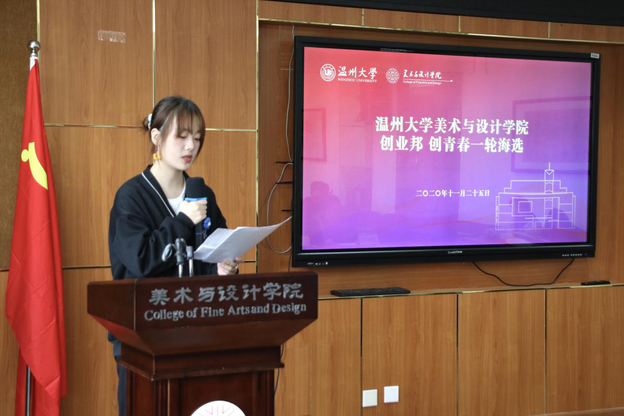 2020年11月25日下午一点半,麻豆视频-m麻豆视频-做爱视频麻豆 于美院2b4001举行了2020创业邦·创青春主题活动的一轮海选。此次活动由美院团委学生会主席、三届创业邦举办者邱懋澄学长、温大创盟创业创新宣传部部长彭左炎学长、温大创业协会会长、美院KAKAYOUGA手工艺工作室蒋丽华学姐、美院团委学生会创业就业部部长、温大创业协会副会长连庆秋、美院团委学生会创业就业部部长、2020麻豆视频互联网+创业创新大赛金奖王臻滢学姐担任评委。此次活动有助于加强温大学生创业技能的学习并且注重大学生创业意志的培养,引导温大人有创新有大胆的同时,深究项目的可行性。