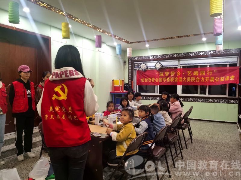 据悉,此次美育公益课程共开设创意美术、软笔书法、硬笔书法三个兴趣班,由温大美院美术师范及设计专业的学生组成的学生讲师团每周日晚上义务授课。自十一月开课以来,40多名侨乡儿童风雨无阻地参加课堂学习。