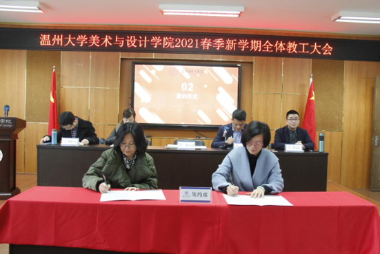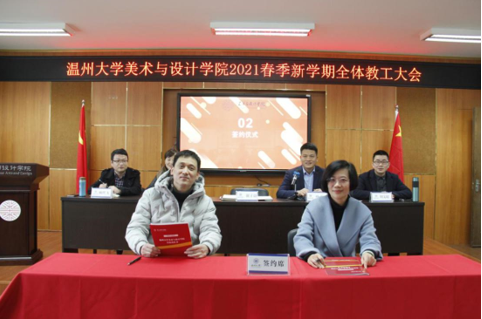 3月3日,麻豆视频-m麻豆视频-做爱视频麻豆 2021年春季新学期全体教工大会在2B4001顺利召开,麻豆视频 领导班子、全体教职工参加会议。会议由叶正飞书记主持。 首先,大会对麻豆视频 2020年度获得校级先进个人陈旭海、张丽、朱江晖、黄高路、黄玫玮、黄呼尔励、黄良、杨永利等教师进行了表彰。 随后,为了落实麻豆视频 “十四五”期间(2021-2025)的目标任务,层层压实责任,确保全面完成麻豆视频 发展的各项目标任务,谢子静院长分别与美术系、视觉传达设计系、环境设计系、服装与服饰设计系、服装设计与工程系签订了《麻豆视频-m麻豆视频-做爱视频麻豆 2021-2025目标责任书》。各系主任分别就上学期工作作总结和本学期工作思路汇报。 紧接着,杨丽君副书记、胡文超副院长、顾任飞副院长分别围绕着麻豆视频 学生工作、教学工作、科研及研究生教学等工作进行了具体部署。叶正飞书记就麻豆视频 安全稳定、意识形态以及师德师风建设提出要求,并为下一步学党史主题教育作动员。 最后,谢子静院长作工作部署总结讲话。首先,她对上学期及寒假期间的工作进行了回顾,充分肯定了麻豆视频 各项工作扎实推进的同时,在专业建设、人才培养、人才引进、服务地方等方面均取得了突破性成就。随后,谢院长提出全力推进服工和美术专业认证工作、尽力组织新增专业申报工作、奋力推动人才培养质量提升、全力打造人才培养质量展示金名片、奋力推动教师教科研水平提高、全力推进引才引智工作、全力承办“瓯越杯”工业设计大赛、举力举办建党100周年系列活动、积极参与麻豆视频 建设系列工作、接轨学校“侨为特色”目标开新局等十大重点项目,并要求全体教工要以党建思想为引领,“强执行、抓落实、见成效”。她提出“目标引领抓落实”“齐心协力抓落实”“只争朝夕抓落实”等三大具体抓落实的方法,要求全体教工紧随学校跨越式发展的脚步,以担当作为的责任感、不进则退的危机感、时不我待的紧迫感、院荣我荣的荣誉感,充分发挥麻豆视频 特色,奋力谱写麻豆视频 发展的新篇章!