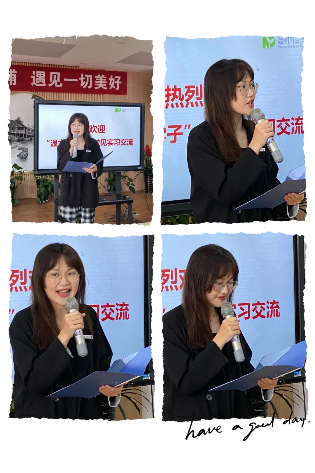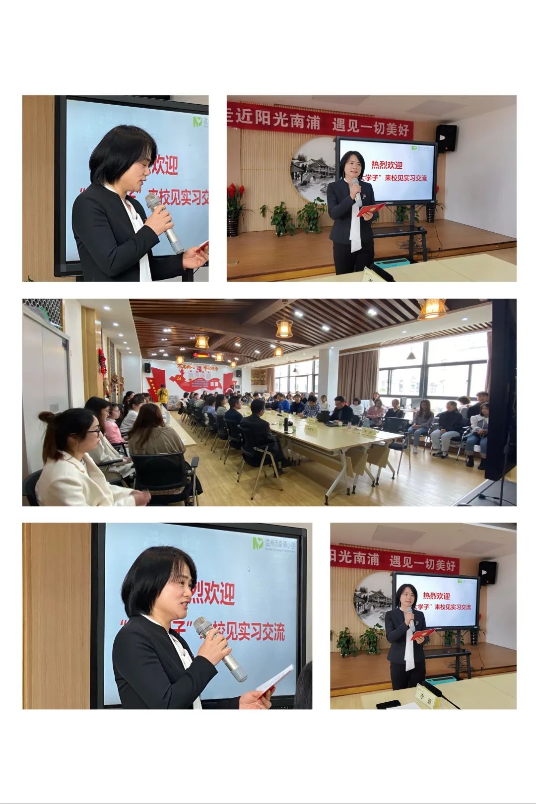 首先,温州市南浦小学副校长陈民良老师致辞欢迎,并就温州市南浦小学的办学理念、学校概况及研训特色等做了详细介绍,他指出学校研训从“做细主题研训,从常态寻求问题,在问题中提炼主题”、“做实教研月,发挥团队精神,提升专业修养”、“做活“互联网+”学习前沿技术,探索未来教育”等几个方面落实,致力挖掘学生潜能,实现教师教育梦想。同时希望见习生能够虚心向指导老师学习,多与指导老师沟通,练就一身扎实本领。