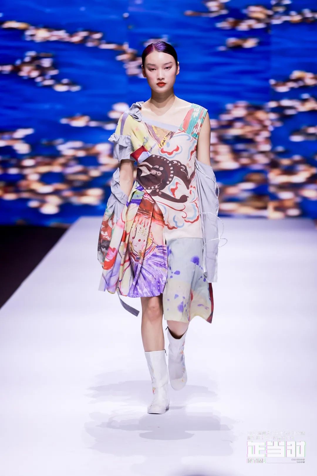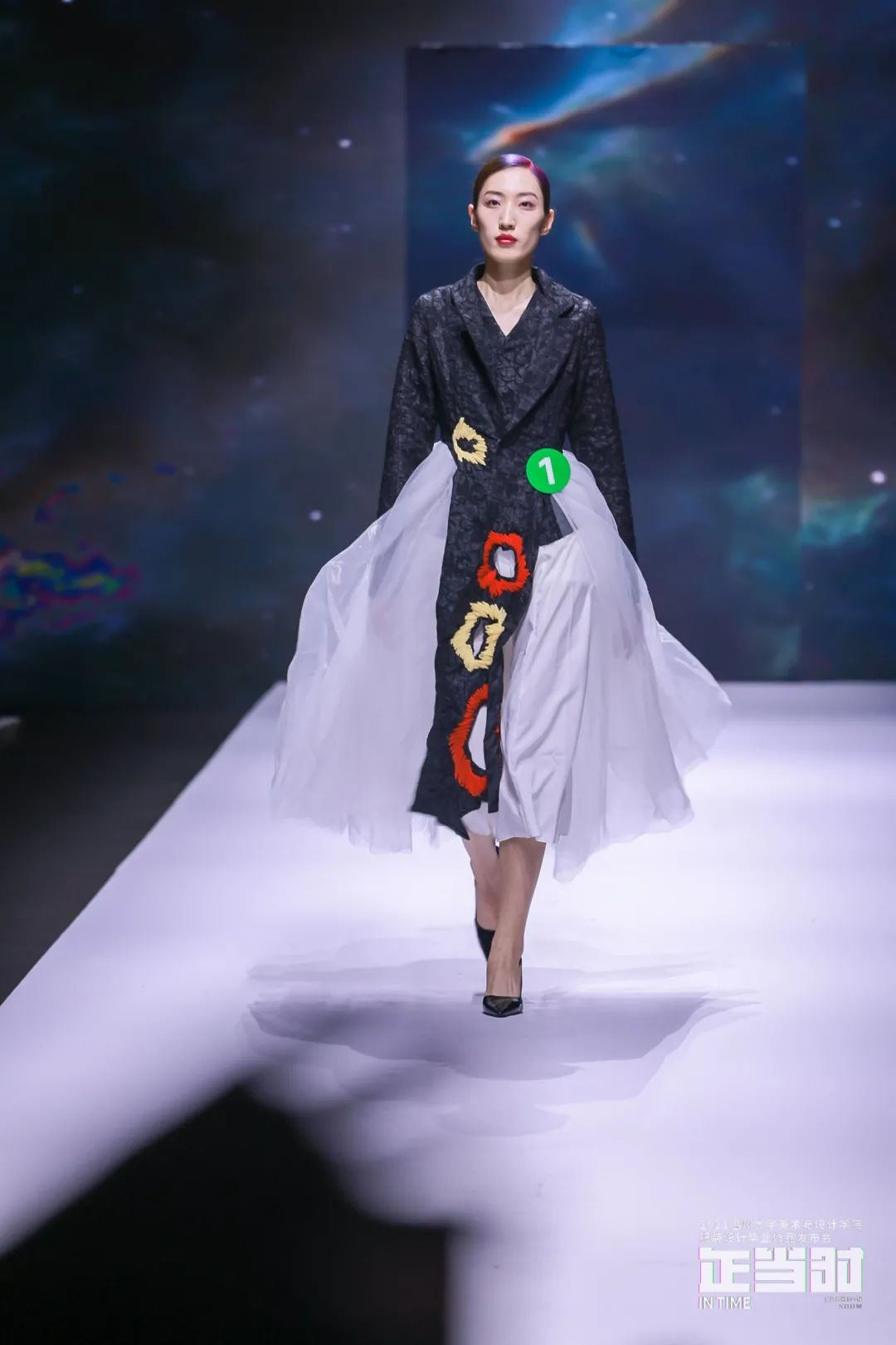 随后进入了发布会精彩律动的服装秀环节。本次发布会共分四大篇章,分别是《后现代宫廷》《民族融合》《空灵花园》《暗夜精灵》,作品风格各异,囊括希望与压抑、未来和复古、浪漫又先锋、都市及民俗、前卫融嬉皮、暗黑携空灵、觉醒搭混沌等各类元素,展示了新锐设计师对服装艺术的理解和追求,用浪漫而创新的方式构塑服装艺术新形象,颠覆人们对服饰的认知,拓展了服装文化的内涵。