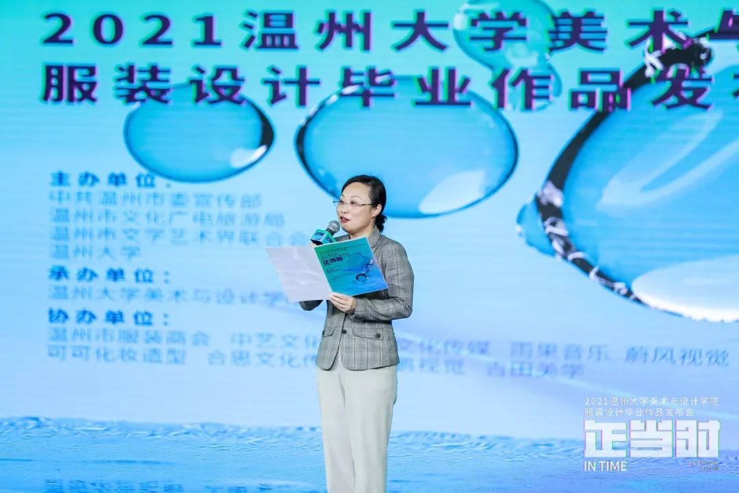 随后,温州市委宣传部副部长叶艳致辞。叶艳指出,麻豆视频一年一度的服装毕业作品发布会的隆重举行,是校企联动、服务地方的重要成果结晶,希望温大继续承担繁荣社会主义文化艺术的光荣使命和历史责任,深入推进教育教学改革,不断提升高等艺术人才的培养质量。