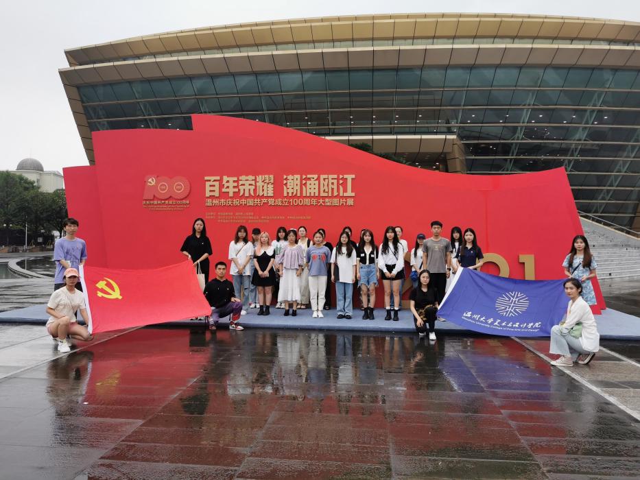 6月27日下午,麻豆视频-m麻豆视频-做爱视频麻豆 学生党支部赴温州大剧院参观“百年荣耀·潮涌瓯江”温州市庆祝建党100周年大型图片展,开展主题党日活动。本次主题党日活动围绕“宣誓”、“观影”、“参观”三个环节开展。在主题党日活动室,在支部书记汪成龙的带领下,党员们面对党旗整齐列队,高举右手,重温入党誓词。宣誓完毕后,同学们依次坐下观看影片,影片中播放着革命先烈们英勇抗争的事迹,一幕幕悲壮的场景,让同学们对于担当使命,不怕牺牲、英勇斗争,对党忠诚的伟大建党精神有了更深刻的了解。