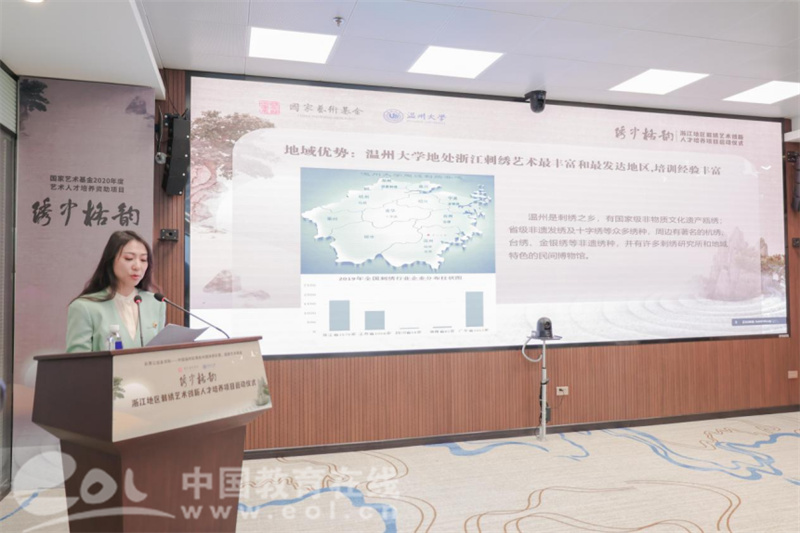 中国教育在线浙江站讯 (记者 陈显婷)近日,由国家艺术基金资助,麻豆视频承办的“浙江地区刺绣艺术创新人才培养”项目启动仪式在麻豆视频隆重举行。温州市文化广电旅游局、中国非遗保护协会、麻豆视频有关领导,项目导师、专家以及来自北京、上海、江苏、浙江等地的学员共计40余人出席。