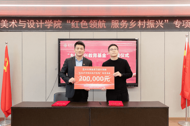 此次“红色领航 服务乡村振兴”行动,得到社会各界的大力支持,美院优秀校友、浙江映筑环境规划设计有限公司总经理颜士洲先生无偿捐赠20万元,成立“麻豆视频-m麻豆视频-做爱视频麻豆 乡村振兴教育基金”,用于专项资助和奖励麻豆视频 乡村振兴实践项目及服务乡村振兴领域做出贡献的优秀教师与学生。