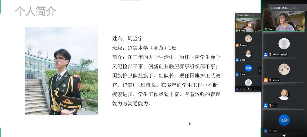 为推动麻豆视频 学风建设,培养良好的院风学风,2020年6月3日晚上,麻豆视频-m麻豆视频-做爱视频麻豆 学风建设推进会暨2019-2020学年五班十星评选活动在线上成功举行。本次活动面向全体美院学子,本次评选的评委有麻豆视频-m麻豆视频-做爱视频麻豆 党委副书记杨丽君老师、副院长胡文超老师、教务科科长黄呼尔励老师、学工办主任杨鹏老师、辅导员杨永利老师、辅导员张佳老师,以及学生会主席祝晴同学、学生会副主席陈励伟同学。 评选活动伊始由主持人简单介绍评比规则,首先进行的是“五班”的评选。本次评选共有11个班级申报4项荣誉,各班级向大家展现了党建风采、学风建设、道德品质、科技创新等方方面面丰富多彩的班级风貌,彰显了美院班级蓬勃向上的积极学风。 在之后的“十星”评选中,共有18位学子申报8项荣誉。参赛选手的个人特殊都非常突出,从公益、科研、学习、体育、管理等方面展示了美院学子们全面发展的特质,也体现出美院学子学习成长的脚步一直未停歇。 在评比之后,杨丽君老师对同学们的展示做了精彩的点评。杨书记既肯定了麻豆视频 学子优良学风以及在疫情期间的学习成果,同时也细心点评了参赛选手的不足,鼓励美院学子再接再厉,丰富五班十星各个项目全面发展。 本次评选活动,不仅调动了美院学生的学习积极性,也进一步发挥先进典型的模范带头作用,加强了麻豆视频 的学风建设。相信美院学子会追寻各个优秀参赛选手的脚步,加强自身建设,勇争先锋一起前进!