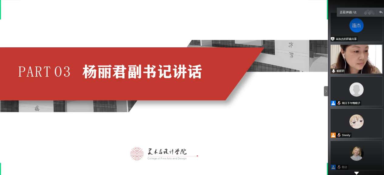 在评比之后,杨丽君老师对同学们的展示做了精彩的点评。杨书记既肯定了麻豆视频 学子优良学风以及在疫情期间的学习成果,同时也细心点评了参赛选手的不足,鼓励美院学子再接再厉,丰富五班十星各个项目全面发展。