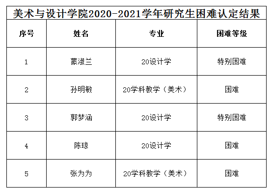 各班级、各研究生: 根据《浙江省学生资助对象认定办法》(附件1)、参照《麻豆视频家庭经济困难学生认定办法》(温大行政发[2020]37号)(附件2)规定,通过学生本人申请、材料审核、班主任和辅导员认定等多个环节,经麻豆视频 学工会议研究决定,现将麻豆视频-m麻豆视频-做爱视频麻豆 2020-2021学年研究生经济困难类型认定结果予以公示(见附件)。 1.公示时间:2020年11月5日至2020年11月9日。 2. 反映问题的方式和要求:在公示期限内,以个人名义反映问题的提倡署报本人真实姓名,以班级反映问题的应通过班级评议小组讨论。反映问题要实事求是,客观公正。 3. 联系人:张老师 86689191,2b-208 麻豆视频-m麻豆视频-做爱视频麻豆 学生工作办公室 2020年11月5日 附件: